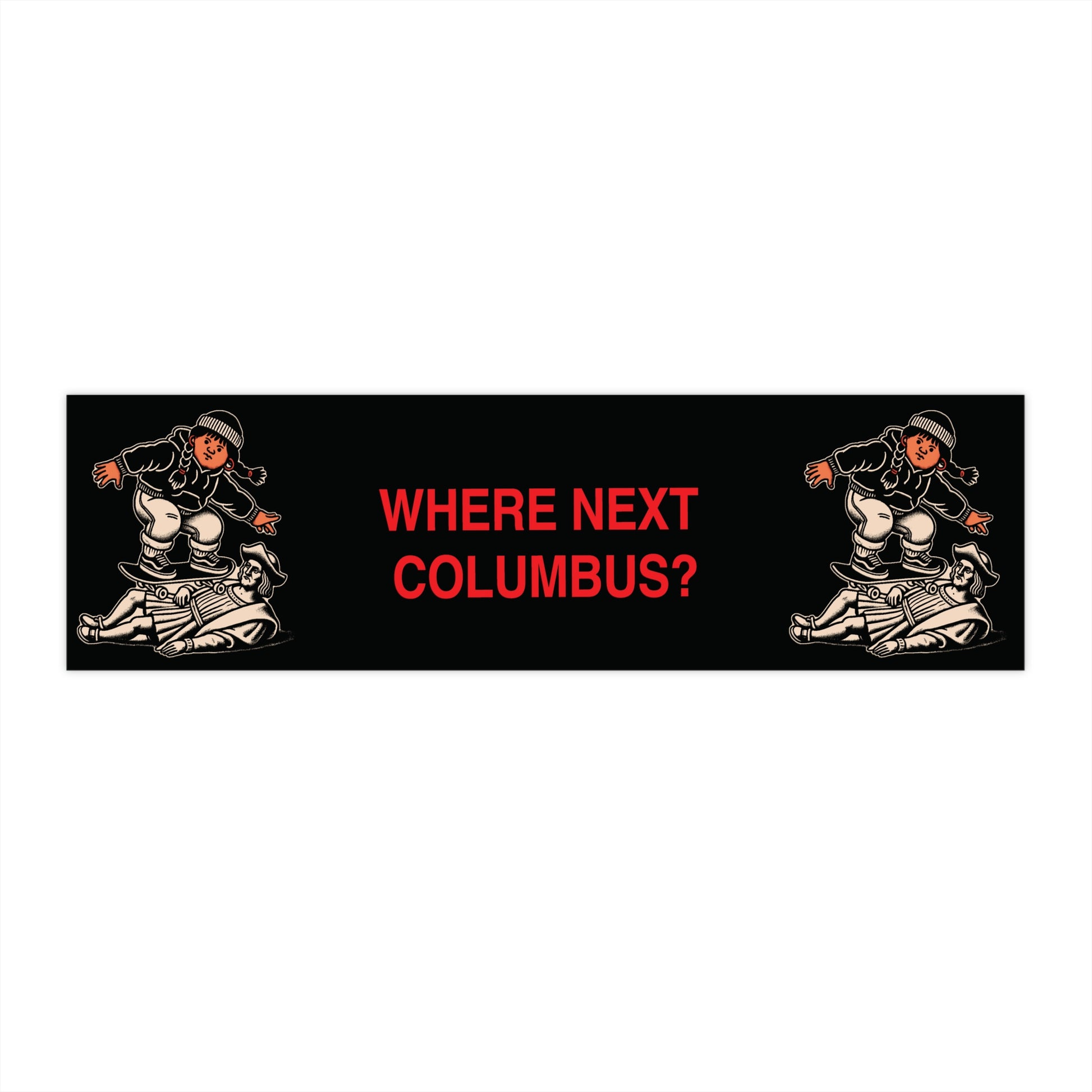 Premium vinyl bumper sticker featuring the "WHERE NEXT COLUMBUS?" design.